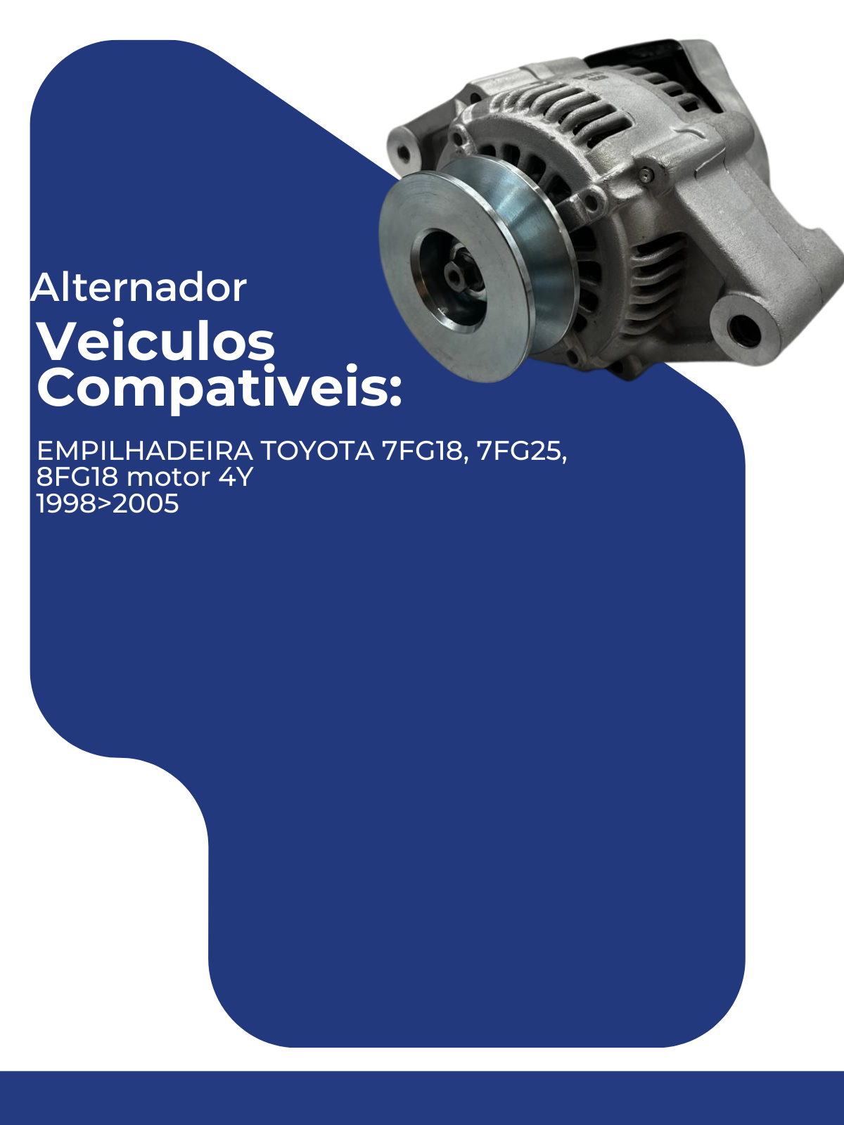 Alternador de 12V e 50A compatível com empilhadeiras Toyota equipadas com motor 4Y. Essencial para garantir um fornecimento de energia confiável para o sistema elétrico, este alternador é projetado para oferecer desempenho eficiente e durabilidade em aplicações industriais exigentes.
